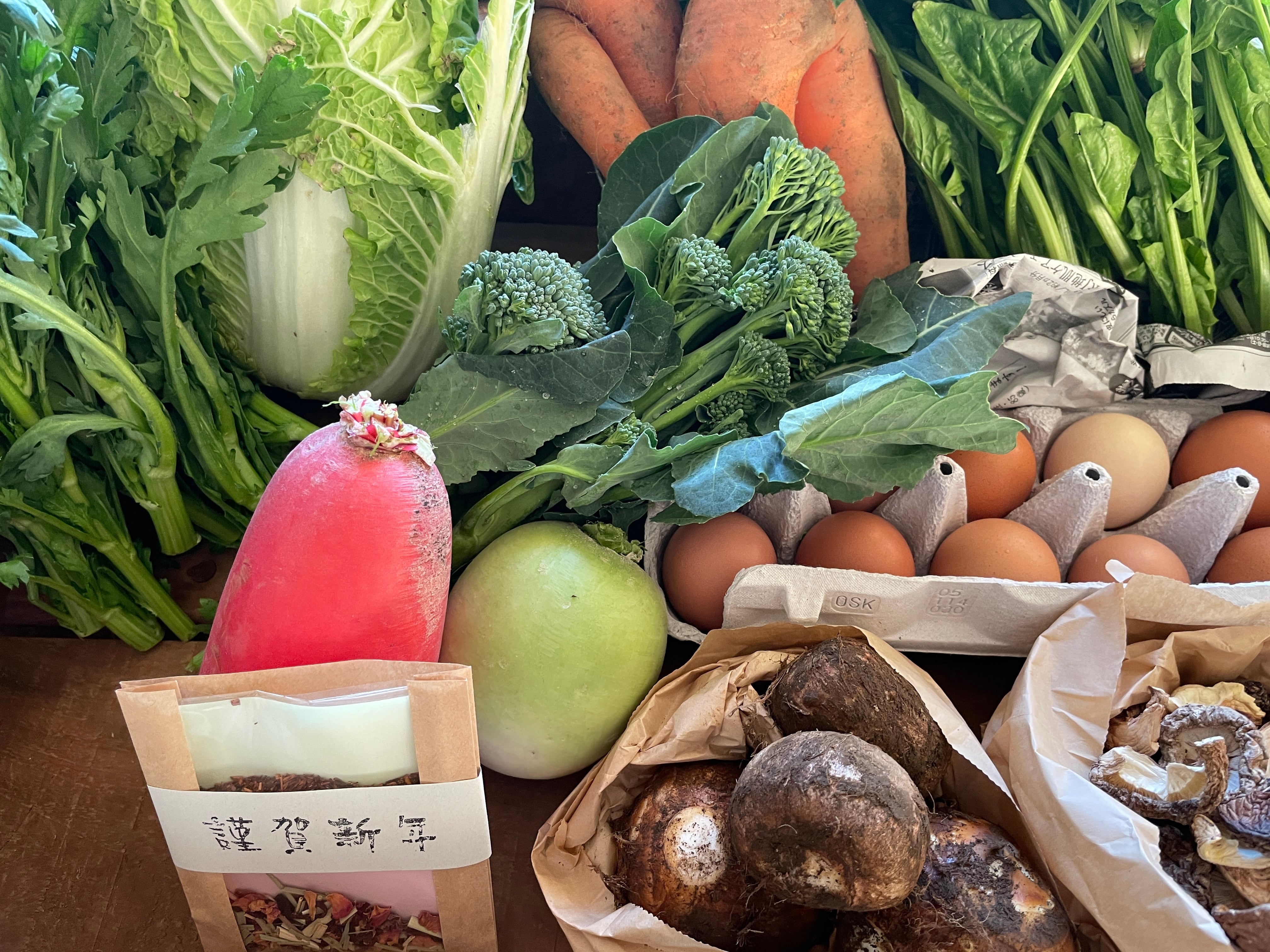 生鮮野菜の他、乾物、お米、卵なども入ったりします